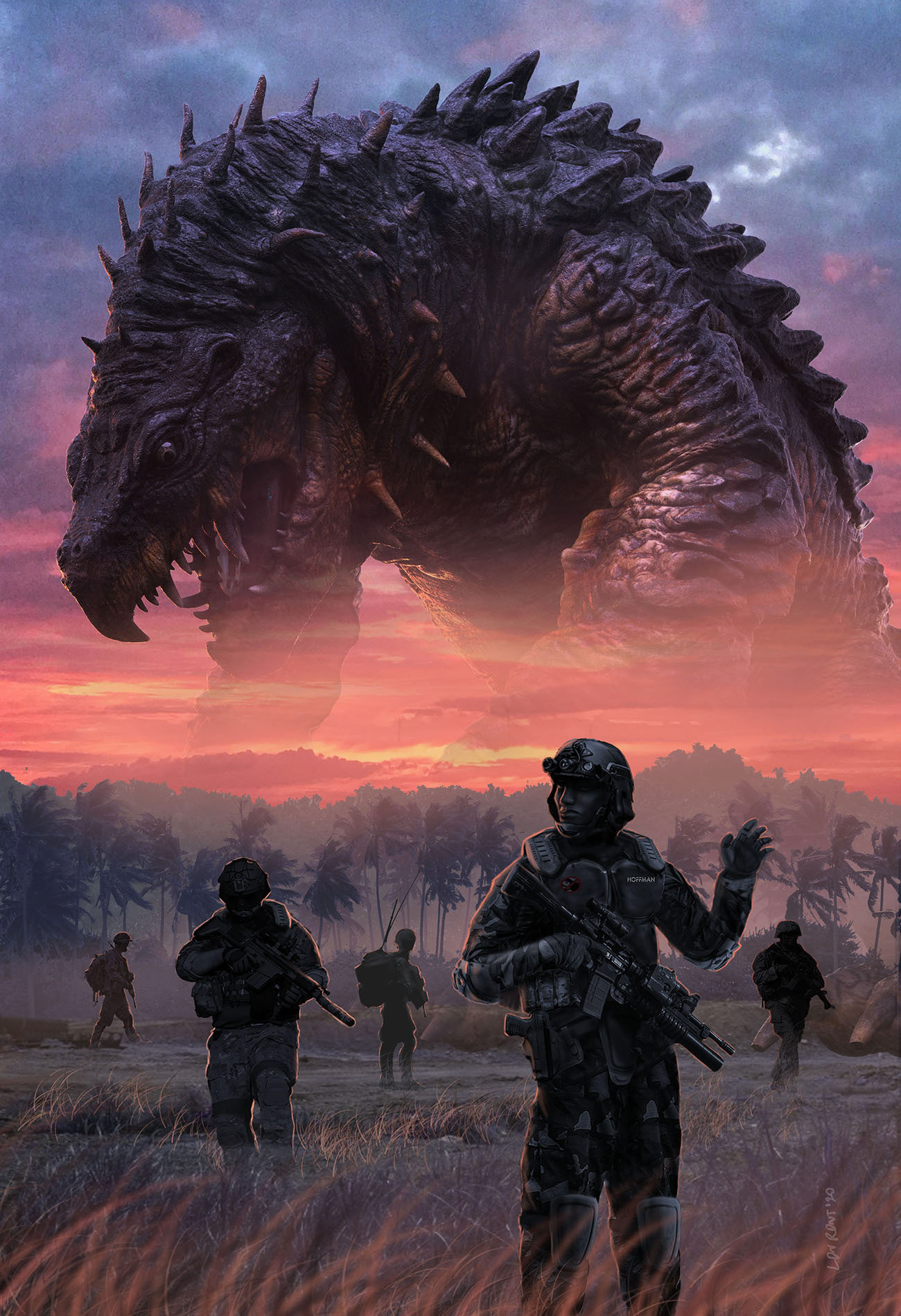 Design and Illustratiuon for Kaiju DOuble Barrel sci-fi horror novella written by Aurelio Rico Lopez III. Published by WIld Hunt Press.